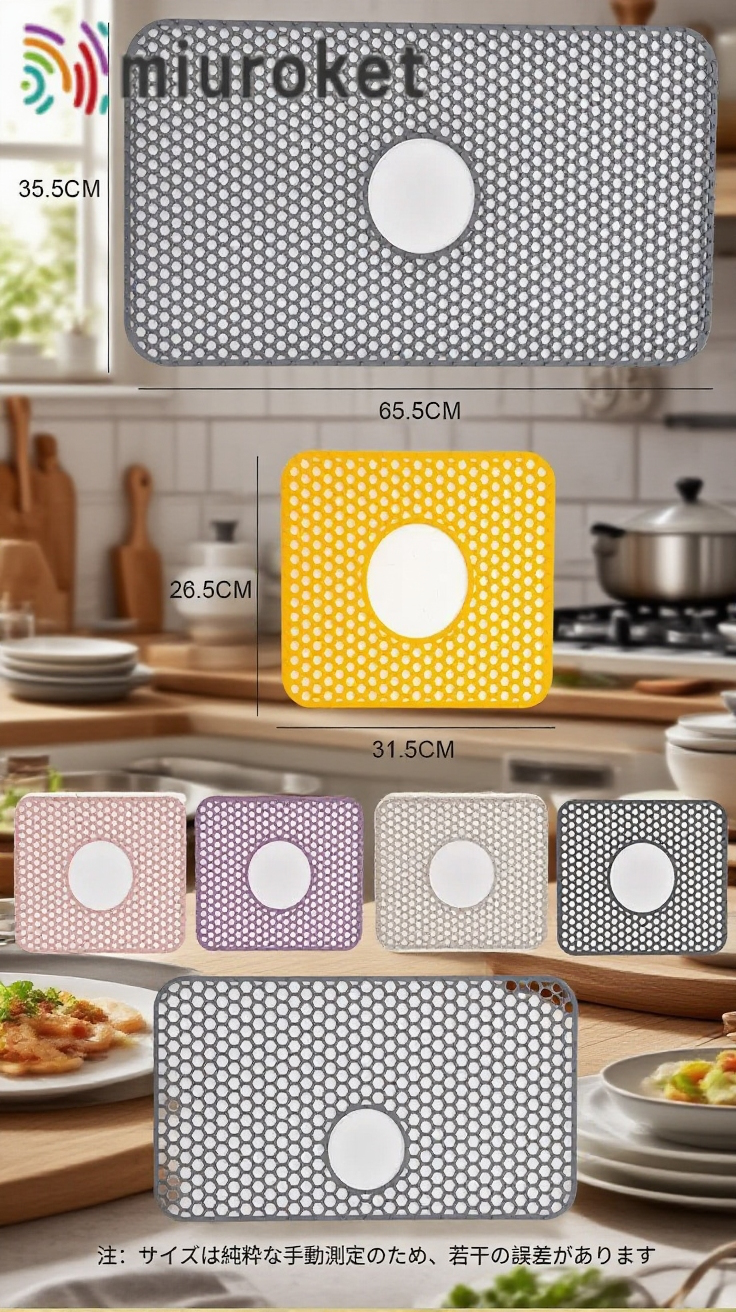 シリコンシンクマット 水切り・断熱・滑り止め機能付き