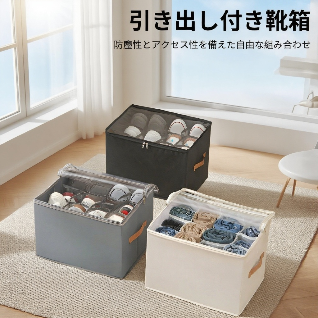 靴収納ボックス 折りたたみ式カバー付き 見える靴箱